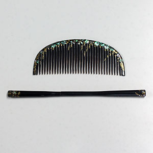 日本髪用櫛・笄(8) べっ甲白詰草図螺鈿櫛・笄