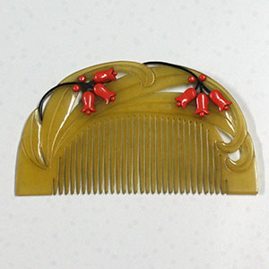 日本髪用櫛(35) セルロイド菊・御所車図櫛 (模造真珠入り)